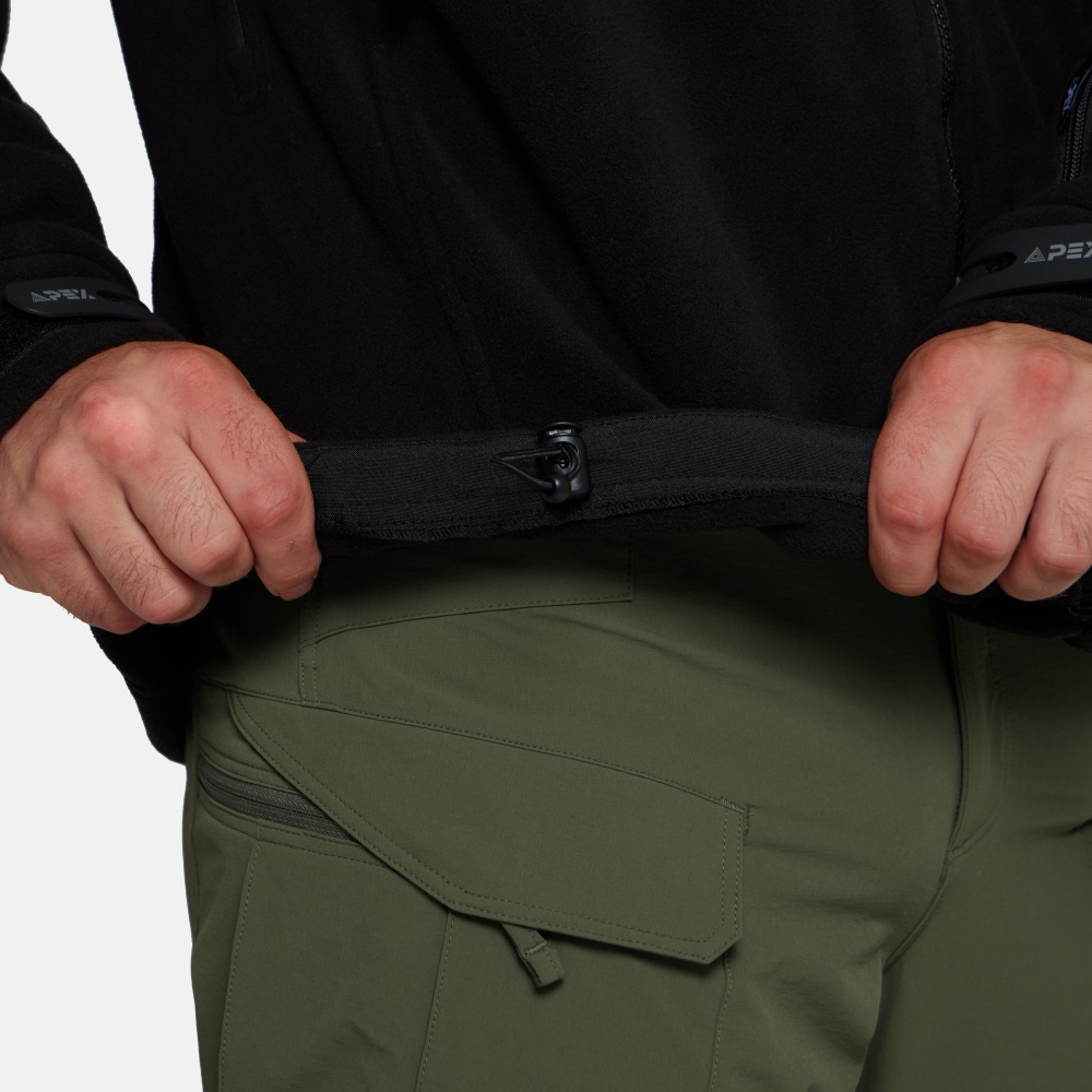 В нагрудном кармане есть проушины для проводов и органайзеры для небольших устройств. Три внешних кармана в легкодоступных местах – на верхнем и левом нижнем рукаве – обеспечат дополнительное место для хранения. Локти усилены для дополнительной устойчивости к износу и разрыву. Куртку можно подгонять индивидуально с помощью регулируемых на липучке манжет и эластичных завязок на капюшоне и нижней части куртки.