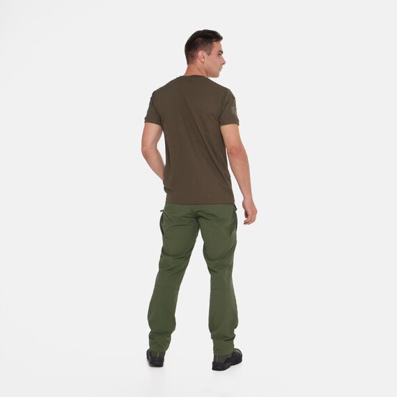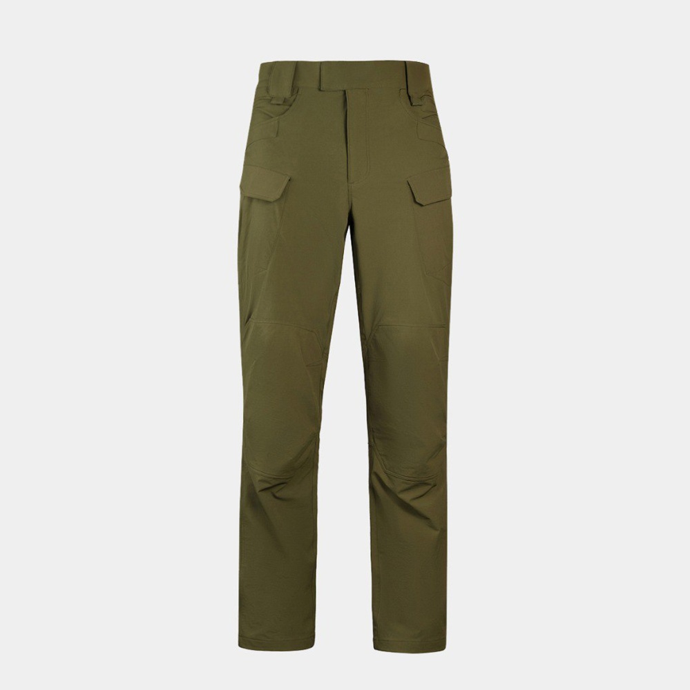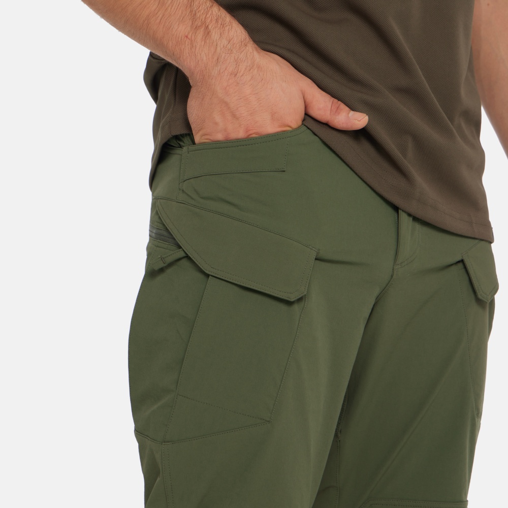 Конструкция брюк EIGER позволяет носить с собой все необходимое снаряжение, а анатомический крой не стесняет движений. Эластичный пояс и застежка на липучке позволяют регулировать размер. Большие петли для ремня позволяют использовать широкие ремни (шириной до 50 мм). Расположение карманов позволяет распределить нагрузку вблизи центра тяжести и вокруг бедер и талии. Края карманов усилены, чтобы выдерживать постоянное скольжение зажимов для фонарей и ножей. Два передних кармана на липучках достаточно велики, чтобы вместить смартфон или запасной магазин для винтовки (AK / AR). В набедренные карманы на молнии можно положить бумажник или небольшую сумку. Внутренние карманы на коленях позволяют использовать низкопрофильные защитные накладки из неопрена.