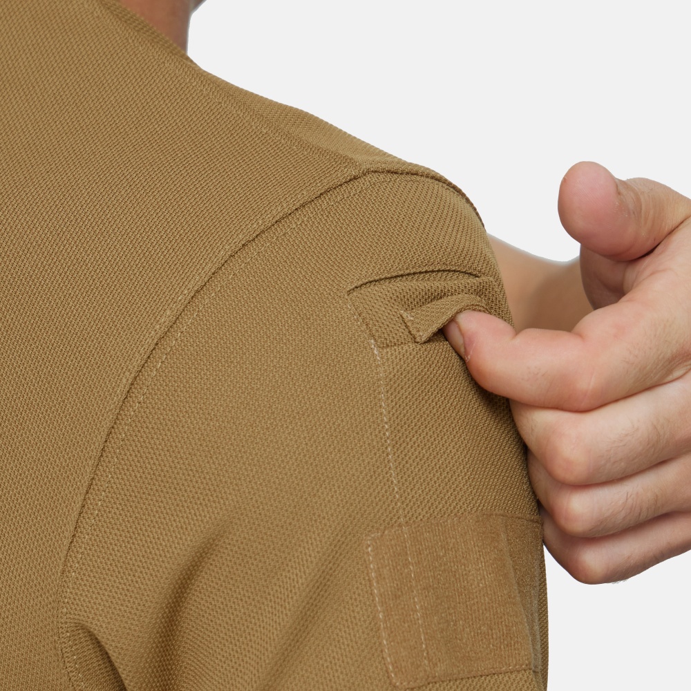 Футболка оснащена двумя карманами на плечах с велкро панелями для персонализации. Специальные петли для очков.