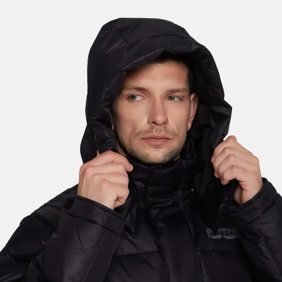 Утеплитель из 90% гусиного пуха по технологии Goose Down обеспечивает максимальную теплоизоляцию при лёгком весе — от 318 до 385 г в зависимости от размера. Подкладка и капюшон из мягкого полиэстера создают дополнительный комфорт и защиту от ветра.