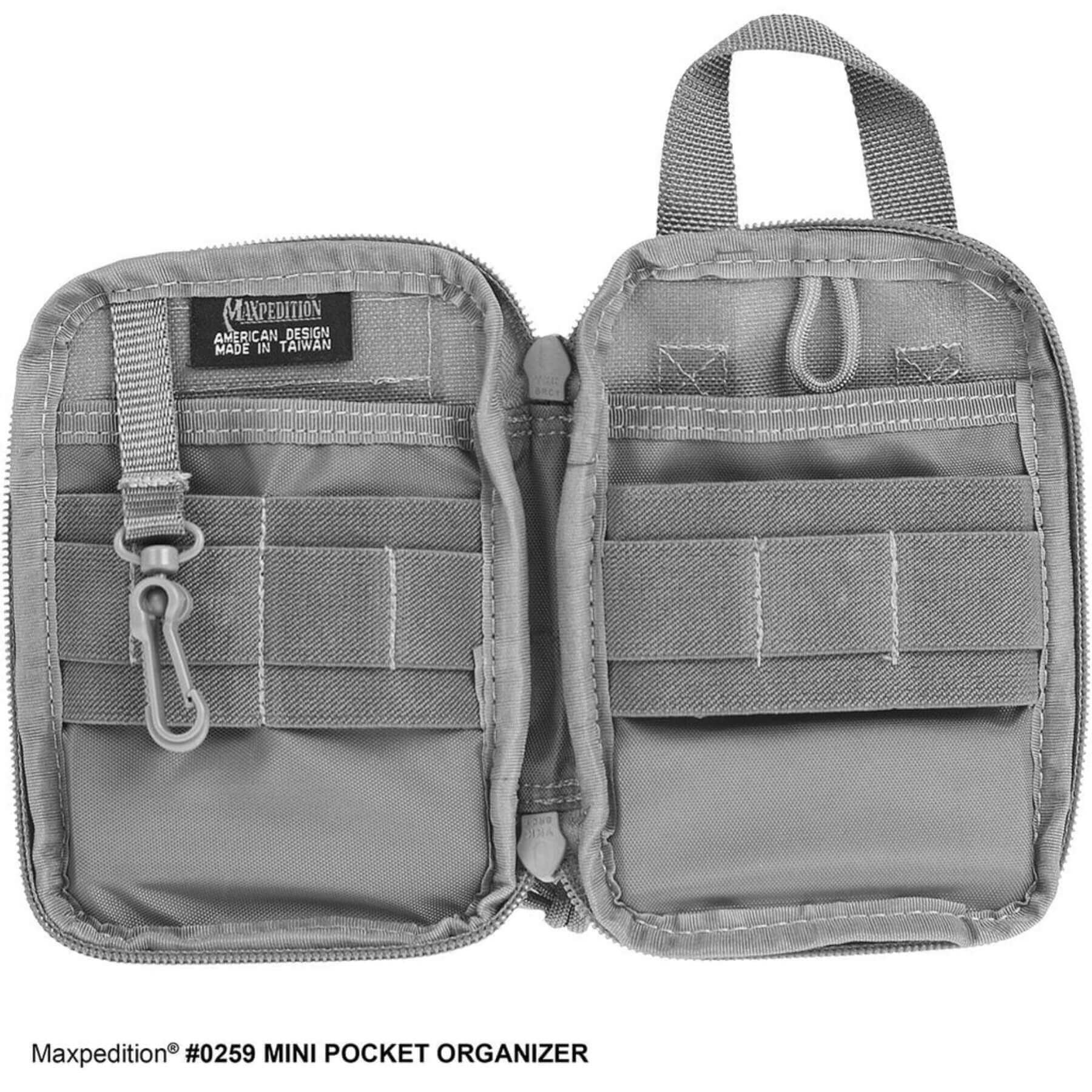 Maxpedition Mini Pocket — уменьшенная версия Maxpedition Fatty Pocket , в который он с легкостью помещается полностью. На фронтальной стороне расположен сетчатый карман на Velcro-липучке с логотипом производителя Maxpedition, предназначенный для мелких предметов или бумаг. Сверху находится Velcro-панель для патчей или идентификационных шевронов.