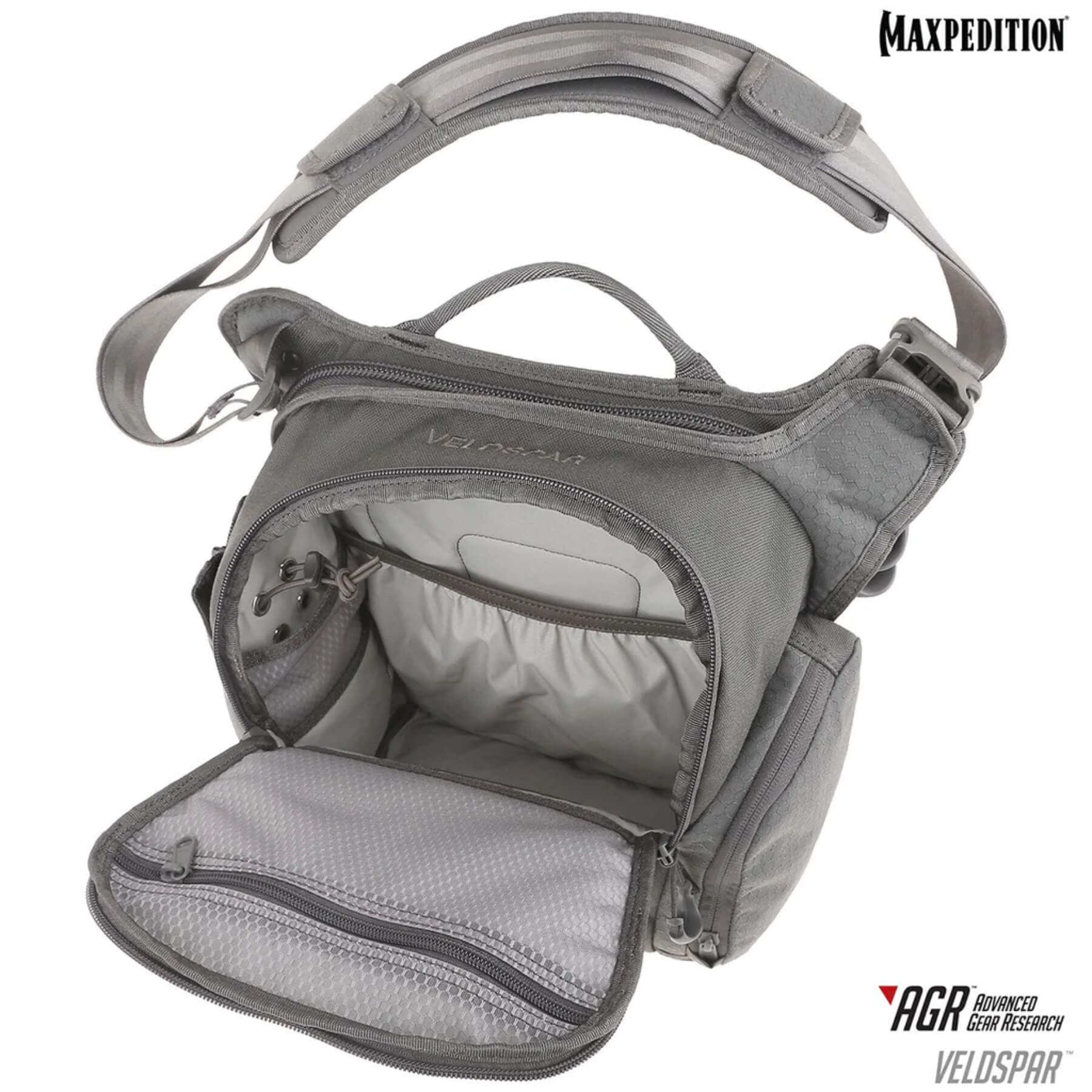 Плечевая сумка Maxpedition AGR Veldspar VLD — обновленная версия проверенной временем популярной сумки Maxpedition JUMBO. Фирменная тактическая функциональность в сдержанный дизайн делают сумку идеально подходящий для ношения в городе и путешествий.