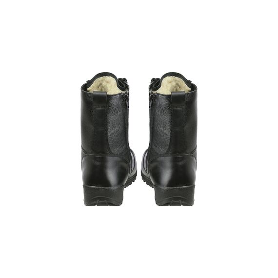 Ботинок сделан из мягкой кожи толщиной 1.2-1.4 мм с водоотталкивающей пропиткой в комбинации с утеплителем шерсть мериноса. что обеспечивает комфортную носку зимой до минус 15 градусов. До сих пор не создан аналог овечьей шерсти, способный в точности повторить ее уникальные терморегулирующие свойства. Именно поэтому изделия комфортны как в жару, так и хорошо защищают от холода. Шерсть мериноса является прекрасным терморегулятором, так как поддерживает постоянную температуру тела без перегрева. Шерсть мериноса в сравнении с синтетическими утеплителями отличает высокая гигроскопичность, за счет капиллярного эффекта она поглощает до 33% влаги от собственного веса при этом поверхность остается сухой. Стоит отметить также лечебные свойства. Изделия из шерсти мериноса производят микромассаж, улучшающий кровообращение, не раздражают кожу. Ланолин, который содержится в шерсти, благотворно влияет на организм человека при остеохондрозе, ортопедических, ревматических заболеваниях, бронхиальных недугах.