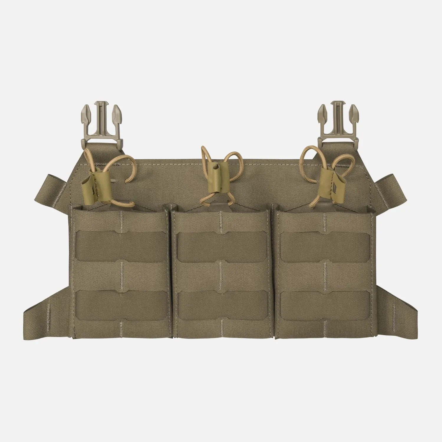 Легкий скелетированный клапан, предназначенный для переноски трех магазинов SR (.308WIN). Покрыт модульной системой лазерной резки, совместимой с MOLLE/PALS. Клапан идеально сочетается с патронником BEARCAT® и системой SPITFIRE®. Магазины крепятся сверху эластичным шнуром с защелками Hypalon®. Благодаря дополнительному интерфейсу его можно превратить в компактное устройство для переноски на груди.