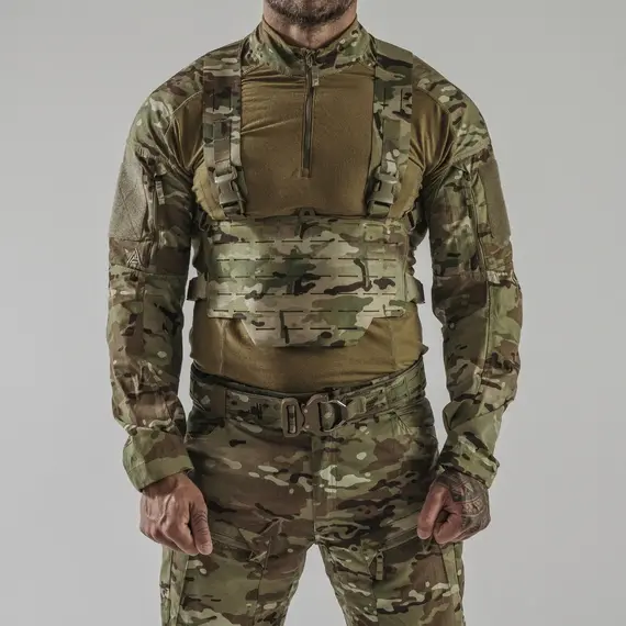 Самый маленький нагрудный ремень серии WARWICK®.. Изготовленная из фирменного ламината, эта установка покрыта модульной системой, совместимой с MOLLE/PALS, выполненной лазерной резкой. Это снаряжение представляет собой базовую модульную платформу, поэтому на его поверхности отсутствуют какие-либо дополнительные патроны или подсумки, что делает его максимально плоским и легким. В плоском внутреннем кармане, закрывающемся на липучку®, можно хранить карту, фотографии целей или любой другой небольшой плоский предмет. Установка может быть прикреплена непосредственно к одному из наших держателей пластин.