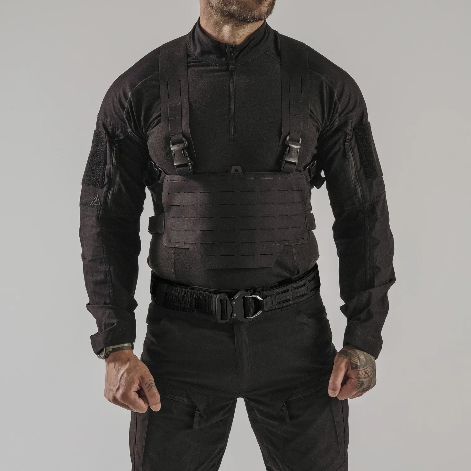 Самый маленький нагрудный ремень серии WARWICK®.. Изготовленная из фирменного ламината, эта установка покрыта модульной системой, совместимой с MOLLE/PALS, выполненной лазерной резкой. Это снаряжение представляет собой базовую модульную платформу, поэтому на его поверхности отсутствуют какие-либо дополнительные патроны или подсумки, что делает его максимально плоским и легким. В плоском внутреннем кармане, закрывающемся на липучку®, можно хранить карту, фотографии целей или любой другой небольшой плоский предмет. Установка может быть прикреплена непосредственно к одному из наших держателей пластин.