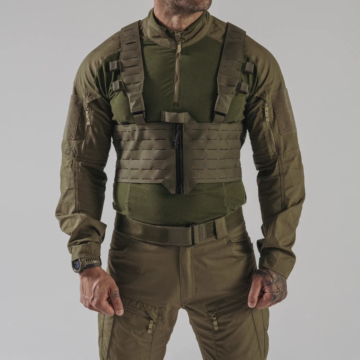 Одно из наших нагрудных приспособлений на молнии, наряду с HURRICANE® и TEMPEST®, нагрудный комплект WARWICK® с застежкой-молнией спереди - самый легкий, плоский и модульный из них. Застежка-молния спереди - идеальная базовая платформа для патрульного комплекта, особенно в сочетании с одним из наших рюкзаков. Это снаряжение изготовлено из фирменного ламината, без каких-либо дополнительных подсумков или патронов, только плоские карманы на каждой панели для карты, фотографии цели и т.д. Вся поверхность снаряжения покрыта модульной системой, совместимой с MOLLE/PALS. Благодаря съемным, полностью модульным плечевым ремням, нагрудный ремень может быть прикреплен непосредственно к одному из наших носителей пластин.