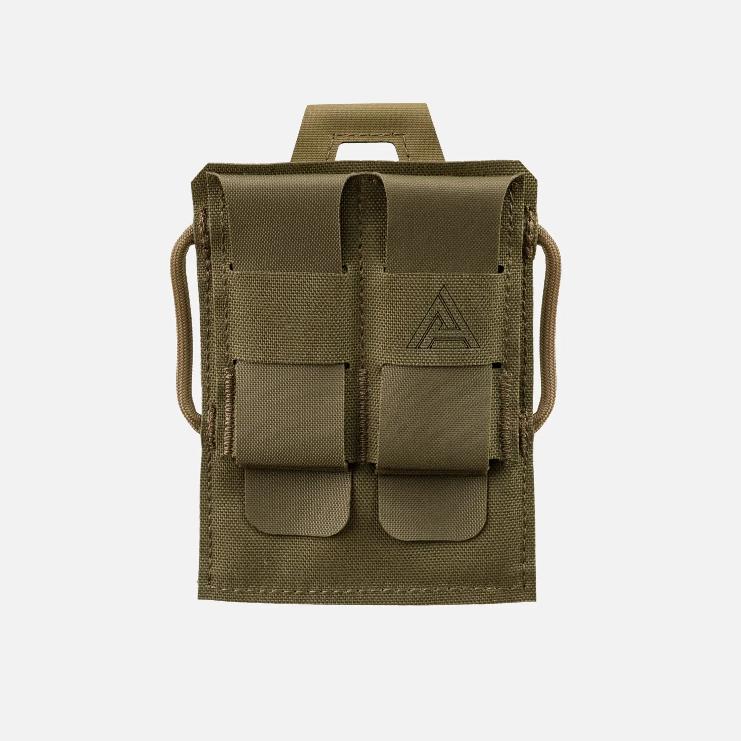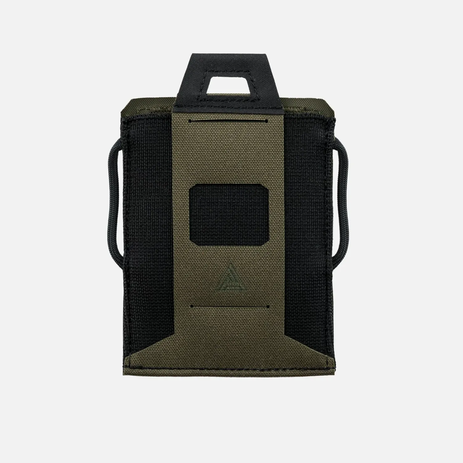 Одинарная плоская эластичная подсумочная сумка - это тонкая индивидуальная сумка, предназначенная для дополнительного снаряжения. Ее плоская и легкая конструкция минимально увеличивает вес снаряжения, позволяя при этом носить дополнительный магазин, гранату или другое снаряжение. Благодаря своему дизайну и используемым материалам (сочетание ламината и резины), он занимает минимум места, когда пустует. Подсумок крепится с помощью двух столбиков системы MOLLE/PALS, а благодаря петлям из паракорда его также можно носить на оружейном ремне шириной до 45 мм. На передней панели подсумка имеются вырезанные лазером отверстия, совместимые с системой MOLLE/PALS. Он герметично закрывается снизу, защищая боеприпасы от грязи.