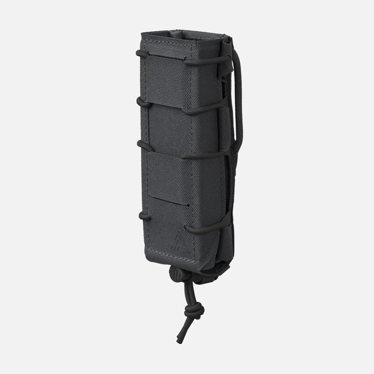 Как и в случае с винтовкой, наш подсумок SMG предназначен для быстрой перезарядки, но в то же время обеспечивает надежное ношение магазина. Новая версия вмещает магазины для самых популярных пистолетов-пулеметов на рынке, включая магазины большего размера для системы Scorpion или Sig Sauer MPX. Внутренняя накладка Hypalon®, жесткая конструкция, в сочетании с верхним отверстием ограниченного размера и эластичным шнуром с регулировкой натяжения, предотвращает выпадение магазина в случае его зацепления. Благодаря жесткости подсумка вы можете легко вложить магазин в кобуру только одной рукой. Подсумок не только совместим с MOLLE / PALS, но и, благодаря специально разработанным петлям из паракорда, вы можете закрепить его на любом оружейном ремне диаметром 45 мм.