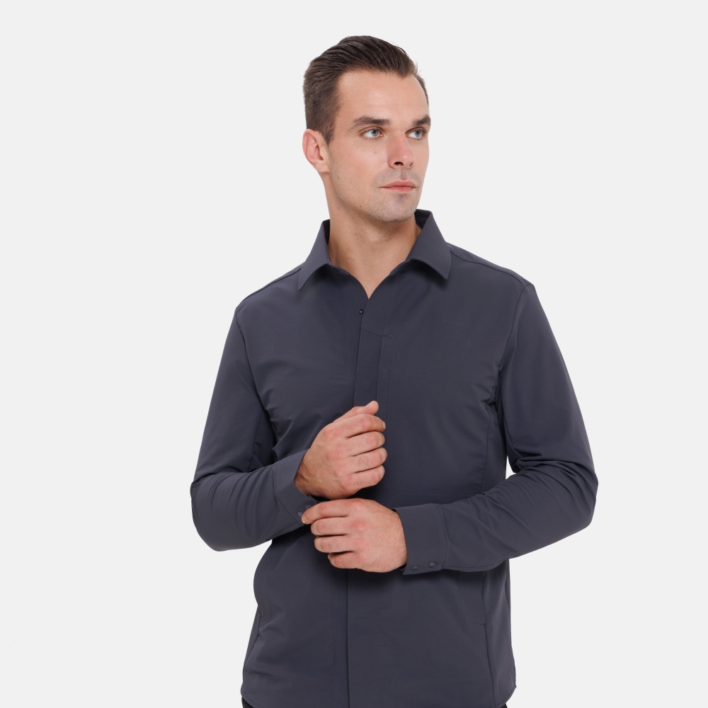 *эластичная структура делает рубашку удобной как в движении, так и в статике,