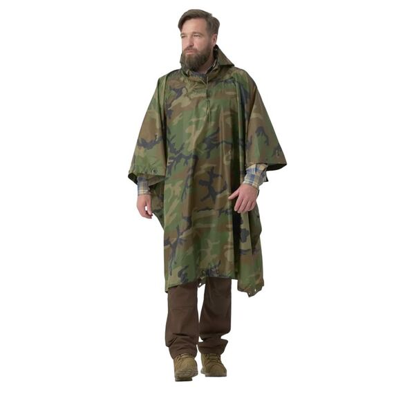 Пончо U.S. Model — это дождевое пончо военного образца, изготовленное из 100% полиэстера с рипстопным плетением, которое обеспечивает лёгкое и практичное решение для защиты от дождя. Этот материал обладает исключительной устойчивостью к разрывам и воздействию воды, что делает пончо идеальным для использования в сложных погодных условиях.