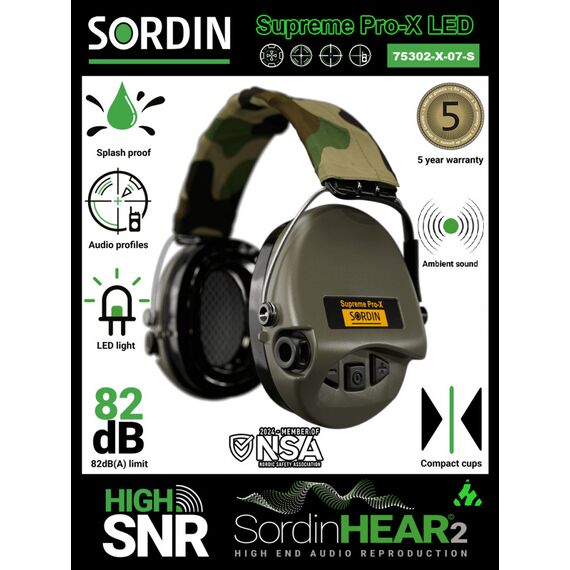 Камуфляжные активные наушники Sordin Supreme Pro-X Led Green