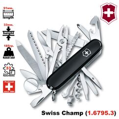 Складной нож с инструментами Victorinox Swiss Champ средний карманный нож название которого все объясняет - чемпион. Максимальное количество функций 33, оптимальный размер, классическое качество и надежность швейцарского армейского ножа. Складной нож с инструментами Victorinox Hiker -...