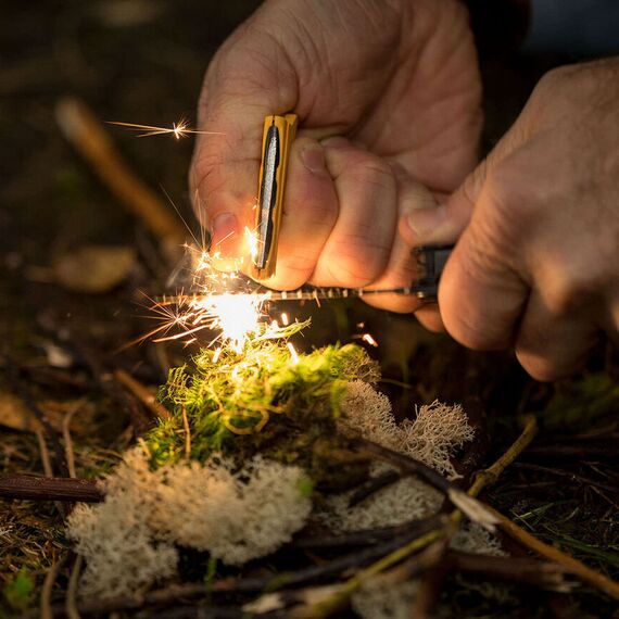 Нож с инструментами LEATHERMAN Signal многофункциональный инструмент, предназначенный для работы на открытом воздухе, включает в себя огниво, молоток, одноручное лезвие и сигнальный свисток. Идеально подходящий для любого приключения, мультитул LEATHERMAN Signal® сочетает в себе 19 полезных инструментов в компактном корпусе размером 4,5 дюйма. Этот многофункциональный инструмент подготовит вас к неожиданностям с помощью ферро-стержня (огниво) для розжига огня, комбинированного лезвия 420HC и спасательного свистка. Затяните механизм с помощью настраиваемого привода для бит и закрепите колья палатки с помощью встроенного молотка. Подготовьтесь и двигайтесь дальше уже с Leatherman Signal®. Защитное покрытие DLC на нержавеющей стали и цветных элементах. Cerakote™ для койотово-коричневого, аквамаринового, малинового, серого и кобальтового цветов. Прочный чехол-кобура из нейлона входит в комплект поставки. Нож с инструментами LEATHERMAN Signal - инструменты: 1. Плоскогубцы с игольчатыми наконечниками 2. Обычные плоскогубцы 3. Сменные кусачки премиум-класса для проводов 4. Сменные кусачки для жесткой проволоки премиум-класса 5. Устройство для зачистки проводов 6. Комбинированный нож 420HC 7. Пила 8. Молоток 9. Шило с петлей для нити 10. Консервный нож 11. Открывалка для бутылок 12. Привод с шестигранной головкой 1/4” 13. Адаптер для бит 14. 1/4 " гаечный ключ 15. Карабин 16. 3/16" гаечный ключ 17. Сигнальный свисток 18. Ферроцериевый стержень (огниво) 19. Точилка с алмазным покрытием Нож с инструментами LEATHERMAN Signal - особенности: Блокировка инструментов. Все элементы (кроме головки плоскогубцев) фиксируются на месте, так что вы можете использовать инструменты безопасно и эффективно. Съемный зажим для кармана (клипса). Снимайте этот карманный зажим, когда захотите. Инструменты, доступные снаружи. Этот многофункциональный мультитул оснащен инструментами, которые можно достать в сложенном, закрытом положении рукояти. Функции, управляемые одной рукой. Держите одну руку свободной для других задач. Открывайте и используйте инструменты этого мультитула одной рукой. Нож с инструментами LEATHERMAN Signal - характеристики: вес 212,6 гр. длина в сложенном виде 11,43 см. длина в рабочем состоянии 17,14 см. длина клинка 6,93 см. ширина 3,8 см. толщина 1,6 см. включает в себя: спасательный свисток, огниво, алмазная точилка, биты в виде крестообразных отвертка № 1-2 и 3/16" Нержавеющая сталь 420HC, покрытие DLC, Cerakote™