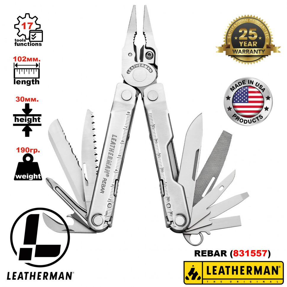 Мультитул с плоскогубцами и ножом LEATHERMAN Rebar Stainless Steel
