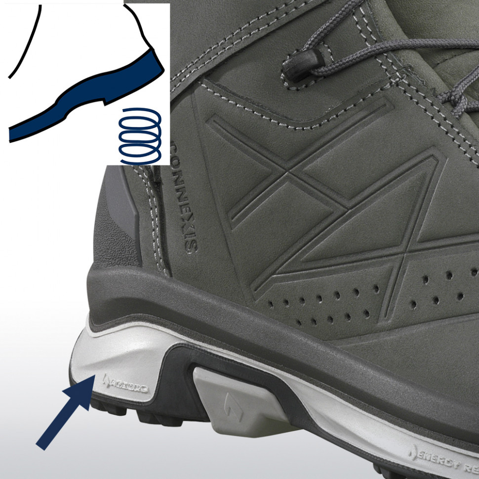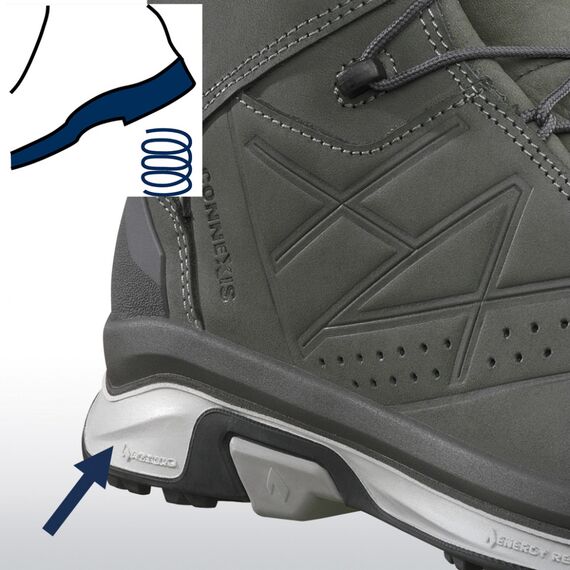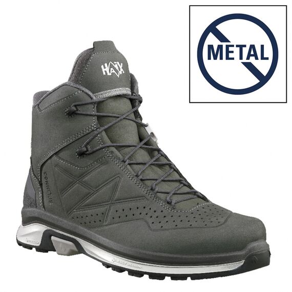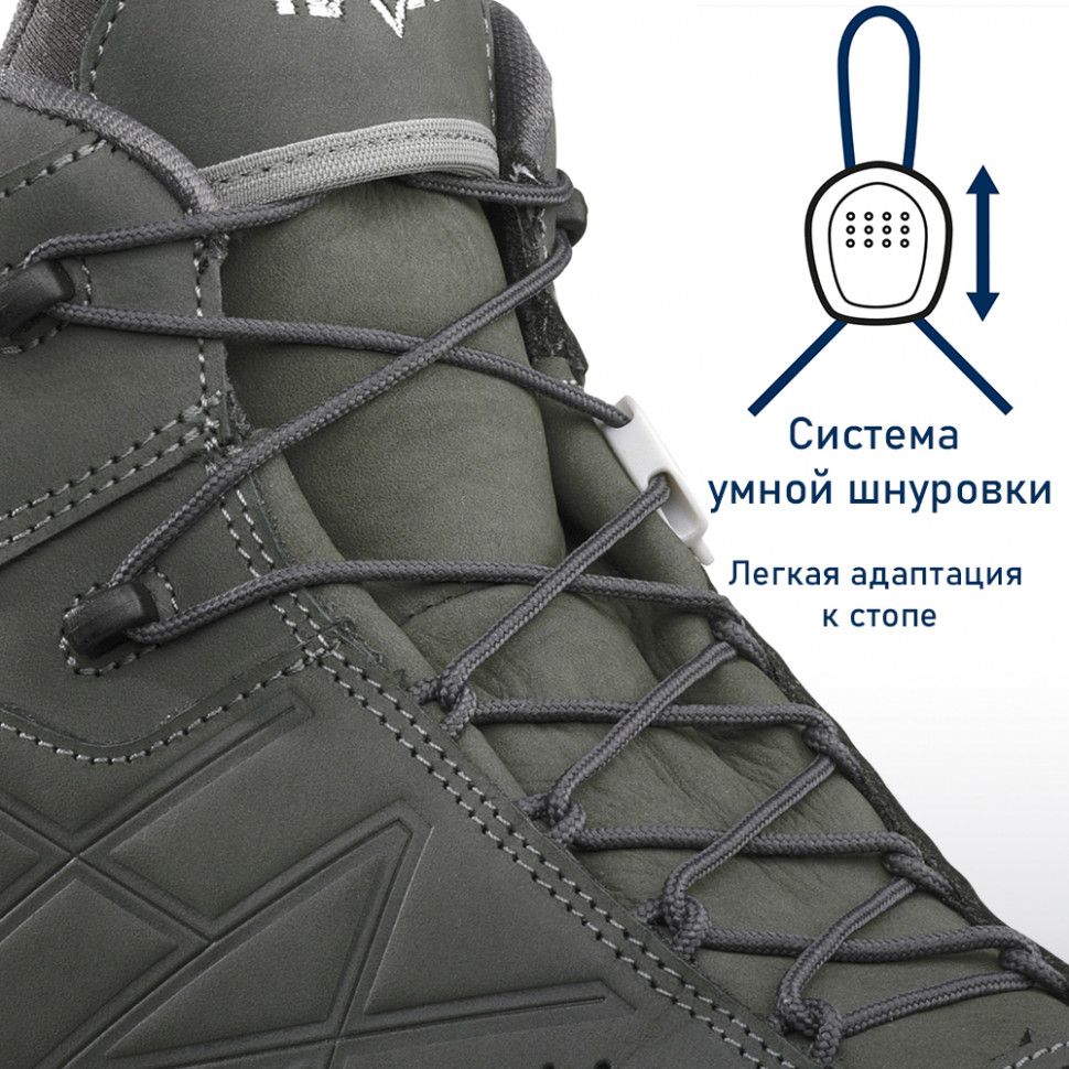Ботинки HAIX Connexis Force Air Graphite с верхом из нубука и прочной противоскользящей резиновой подошвой с отличной амортизацией и сцеплением на различных поверхностях. Противоскользящее покрытие обеспечивается особой резиновой смесью и инновационным профилем подошвы. Уникальная система стимуляции фасции CONNEXIS снижает усталость и повышает выносливость. Отличный выбор как для загородных прогулок, так и для городского ежедневного ношения. Тактические ботинки HAIX Connexis Force Air Graphite - особенности: Устойчивость благодаря противоскользящему покрытию подошвы Connexis Force Air обеспечивают стабильность в любом положении. Чтобы защитить вас от скольжения, подошва со специальной резиновой смесью и инновационной конструкцией протектора обеспечивает чрезвычайно высокую устойчивость к скольжению и сцепление с самыми разнообразными поверхностями. Высокое качество и легкость Connexis Force Air изготовлены из высококачественной нубуковой кожи. Это означает, что они не только элегантно выглядят, но при этом легкие и прочные. Быстрая шнуровка с помощью надежной системы Smart Lacing System С системой Smart Lacing System вы можете быстро и легко отрегулировать ботинки по форме вашей стопы. Благодаря быстроразъемной застежке без давления и удобному карману для шнурков Connexis Force Air быстро надеваются и снимаются. Закрытая система шнуровки обеспечивает надежную посадку, а новый дизайн кармана для шнурков придает обуви современный вид. Конструкция без металла гарантирует, что вы сможете пройти все проверки безопасности Connexis Force Air не содержат металла и поэтому идеально подходят для работы в зонах безопасности. Раздражающий звуковой сигнал при прохождении рамочного контроля теперь остался в прошлом. Снижение усталости с системой CONNEXIS Connexis Force Air повышает вашу выносливость в повседневной жизни благодаря встроенной фасциальной ленте CONNEXIS, стимулирующей мышцы стопы. Результат: комфорт при ношении, который заставляет все тело чувствовать себя бодрым. Промежуточная подошва Energy-Return Промежуточная подошва с функцией возвращения энергии поглощает и отдает энергию с каждым вашим шагом. Благодаря этому вы двигаетесь более эффективно и с меньшими усилиями. Улучшенная амортизация HAIX Вы будете чувствовать себя комфортно в Connexis Force Air, даже если будете ходить несколько часов. Встроенный амортизирующий элемент смягчает ваши шаги. Мы называем это поглощением HAIX: для драйва даже в долгие рабочие дни. Точная посадка благодаря специальной конструкции Идеально сидящая обувь для ваших ног. Благодаря специально разработанным накладкам ботинки Connexis Force Air идеально сидят и обеспечивают максимальный комфорт при ношении в течение всего дня.
