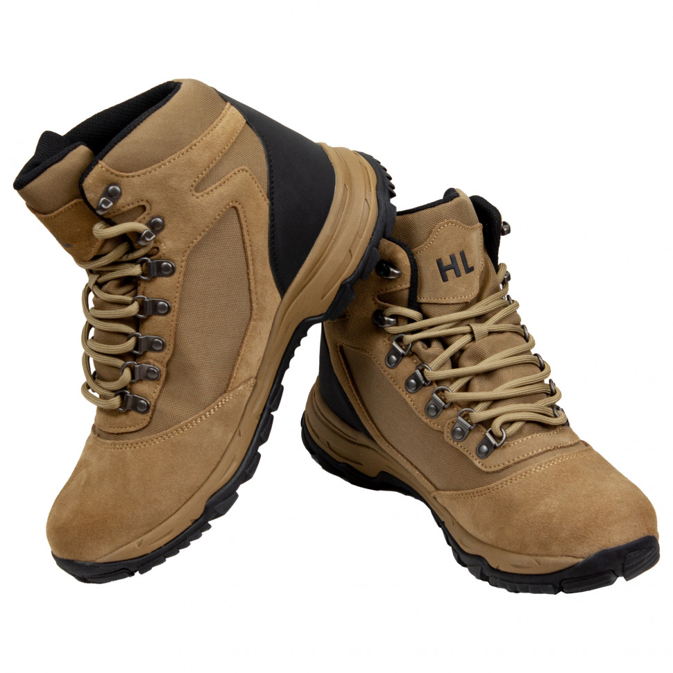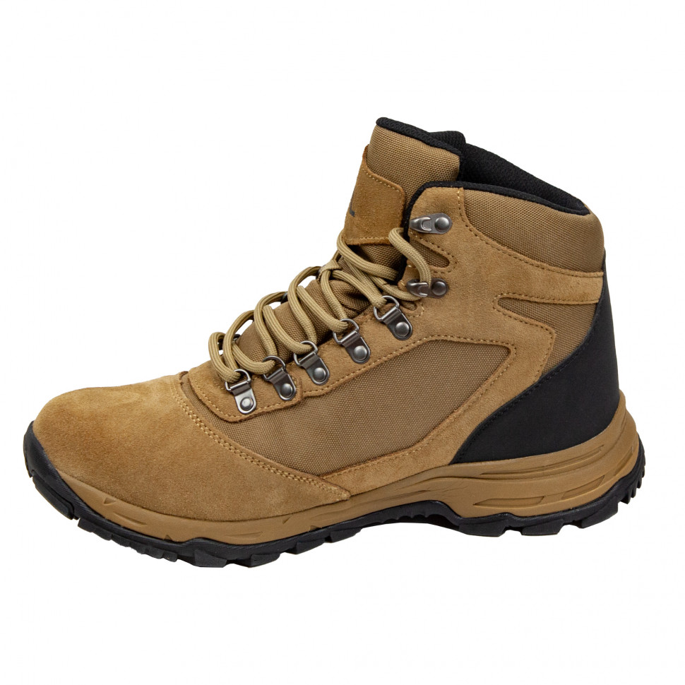 Легкие непромокаемые туристические ботинки Huntlandia Dakar созданы для пеших походов, треккинга и загородных прогулок. Верх их водоотталкивающей замши и прочной синтетики обеспечивает защиту и комфорт. Малый вес ботинок уменьшает усталость ног при длительной ходьбе. Мембранные свойства подкладки APATEX гарантируют водонепроницаемость и воздухопроницаемость. Испарения от ноги выводятся наружу, а влага не проникает внутрь ботинка. Дополнительное защитное усиление на пятке повышает износостойкость. Голенище средней высоты обеспечивает достаточную поддержку голеностопного сустава, позволяя двигаться увереннее по пересеченной местности. Двухслойная подошва с внешним слоем из резины и внутренним из MD (phylon) обеспечивает устойчивость, комфорт и амортизацию. Протектор подошвы имеет самоочищающуюся конструкцию, его проработанный рельефный рисунок обеспечивает сцепление на всех типах поверхности. Съемная мягкая стелька из вспененного материала прекрасно держит форму и создает дополнительный комфорт. Традиционная шнуровка с кольцами на подъеме, заканчивающаяся крючками на верхней части, хорошо фиксирует ногу в ботинке. В комплект также входят дополнительные шнурки со светоотражающими элементами. Непромокаемые ботинки для треккинга Huntlandia Dakar - особенности: комбинированный верх (кожа+оксфорд) влагоотталкивающая пропитка влагостойкая воздухопроницаемая мембрана APATEX мягкая комфортная подкладка интегрированный язычок классическая шнуровка защитная накладка на пятке двухслойная подошва (резина+MD) цепкий рельефный протектор малый вес стильный внешний вид