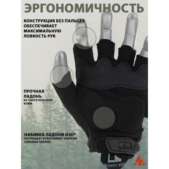 Прочные перчатки с открытыми пальцами и защитой пальцев MECHANIX Tactical Fingerless Covert