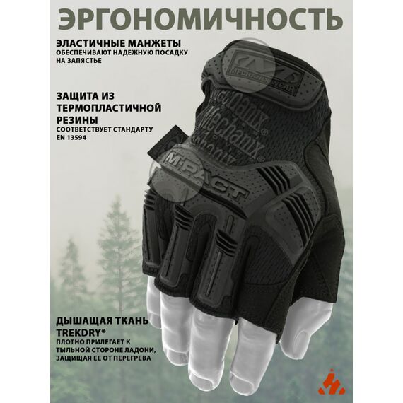 Защита от ударов из термопластичной резины (TPR) соответствует стандарту ударопрочности EN 13594. Застежка из термопластичной резины (TPR) обеспечивает надежную фиксацию на запястье. Дышащий материал TrekDry сохраняет руки в прохладе и комфорте. Усиление ладони Armortex. Конструкция без пальцев обеспечивает максимальную свободу движений. Подкладка ладони D3O поглощает и рассеивает энергию сильного удара. Ладонь из прочной синтетической кожи. Нейлоновые петли для переноски. Можно стирать в стиральной машине. Создайте M-Pact в полевых условиях. Когда вам нужен контроль голых рук без ущерба для защиты, используйте перчатки без пальцев M-Pact. Следующее поколение тактических перчаток M-Pact защищает военных и сотрудников правоохранительных органов с защитой от ударов по стандарту EN 13594. Подкладка ладони D3O рассеивает энергию сильного удара, снижая усталость рук, когда вы полностью вовлечены. Предполагаемое использование: правоохранительные органы; спортивная стрельба; техническое обслуживание и ремонт.