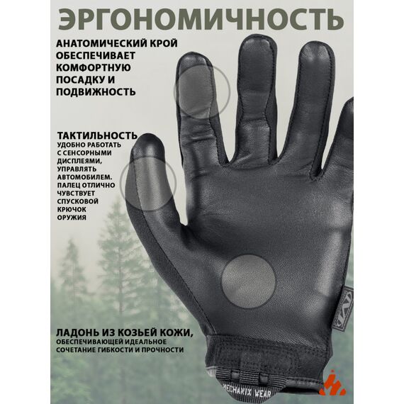 Прочные сенсорные перчатки для полиции MECHANIX Recon из высококачественной кожи, предназначенная для обеспечения универсальной защиты рук сотрудников правоохранительных органов в полевых условиях. Перчатка анатомически спроектирована с учетом естественных изгибов вашей руки с использованием трехмерного рисунка для создания плотной посадки. Ладонь оснащена сенсорным экраном из козьей кожи, что обеспечивает идеальное сочетание ловкости и долговечности в полевых условиях. Прочные сенсорные перчатки для полиции MECHANIX Recon - особенности: - застежка из термопластичной резины (TPR) обеспечивает надежную фиксацию на запястье. - удобный эластичный спандекс прилегает к тыльной стороне ладони. - трехмерный дизайн кроя соответствует естественным изгибам вашей руки. - накладка для большого пальца из козьей кожи повышает долговечность. - защита ладоней из козьей кожи с сенсорным экраном. - защемленная конструкция спускового пальца исключает перекрытие материала. - специальные гибкие суставы улучшают подвижность пальцев. - нейлоновые несущие петли для хранения Перчатки MECHANIX Recon - сферы использования: правоохранительные органы стрелковый спорт