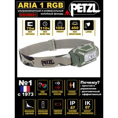 Водонепроницаемый и прочный налобный тактический фонарь PETZL Aria 1 RGB с мощностью яркости 350 люмен и дополнительными подсветками красного, зеленого и синего цвета - идеально подходит для прогулок и работы на природе ночью. Разработанный для мероприятий, где важна скрытность (таких как охота,...