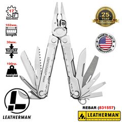 Мультитул Leatherman Rebar включает в себя 17 необходимых инструментов, которые всегда под рукой и помогут справиться с любой задачей на работе или дома. Набор Rebar, популярный на строительных площадках и среди любителей делать что-то своими руками, обладает серьёзными возможностями в своём...