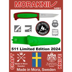 Универсальный нож Mora. Характеристики ножа Morakniv 510: длина клинка - 95 мм.; ширина клинка - мм.; толщина клинка - 2 мм.; длина ножа - 208 мм.; сталь - углеродистая Carbon (56-58 HRC); рукоять - пластик; ножны - пластик; размеры в собранном виде - см.; вес - 89 гр. Нож Morakniv 510 купить в...