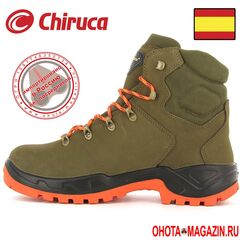 Ботинки для коллективной охоты CHIRUCA Game Hi Vis из натуральной кожи с мембраной Gore-Tex - Разработаны с учетом дополнительной сигнализации партнерам по охоте о своем местонахождении (оранжевая подошва, оранжевые вышивка и шнурки). - Прочная подошва из резины с оригинальным протектором. -...