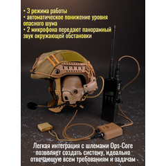 В тактической гарнитуре с шумоподавлением FMA FCS AMP используется собственно разработанная технология обработки панорамного звука в реальном окружении ТSFS (True Sound Field Situation). После того, как пользователь надел гарнитуру, она может эффективно улучшить слуховое восприятие звуковой...