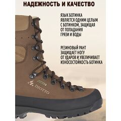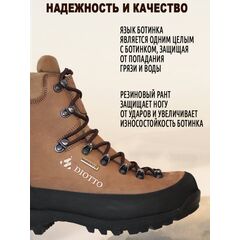 Высокие охотничьи и треккинговые ботинки HL by DIOTTO Nebraska, полностью изготовленные из водоотталкивающего коричневого нубука с матовым покрытием. Верх выполнен из куска натуральной кожи (нубука) с минимальным количеством швов и оснащен дополнительно резиновой лентой что идет по периметру...