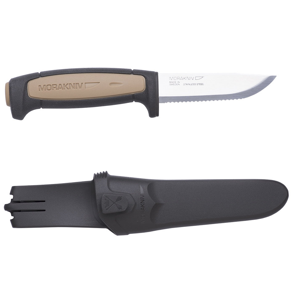 Новое поколение профессиональных ножей Mora отличается более удобной рукояткой, защищающей от выскальзывания ножа из руки. У новой серии инструментальных ножей увеличены размеры клинков. Нож Morakniv Rope с зубчатым лезвием намного лучше режет самые сложные материалы: веревки, тросы, сухожилия и прочее. Нержавеющая сталь Sandvik от компании Mora не подвержена коррозии и достаточно долго держит остроту заточки - такие ножи Mora отличный вариант для использования в любых погодных условиях. Характеристики ножа Morakniv Rope: кромка клинка - пилообразная; длина клинка - 91 мм.; длина ножа - 206 мм.; ширина клинка - мм. (max); толщина размер - 2 мм.; сталь - Sandvik (54-56 HRC); рукоять - прорезиненный пластик; ножны - пластик; размеры в собранном виде - см; вес - 114 гр. Нож Morakniv Rope (нож-пила) купить в Москве с доставкой по России лучше всего у нас - прямого импортера в Россию от производителя Mora (подтверждается наличием сертификата). Вы будете защищены от рисков покупки подделки, контрабандного товара или некачественного товара с браком.