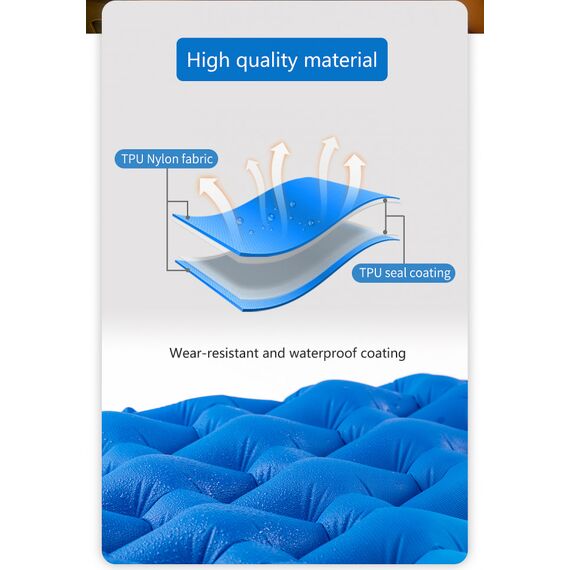 Матрац надувной для туризма и активного отдыха. Это удобная модель, защищённая от влаги. Изготовлено с использованием высококачественного материала – фабричного нейлона, есть также уплотнительное покрытие. Материал: нейлон, ТПУ. Толщина – 6,5 см. Показатель теплоизоляции: 1.5. Размеры, см: 59*195*6.5 Размер в упаковке, см: 30*10*10 Вес, кг: 0,6