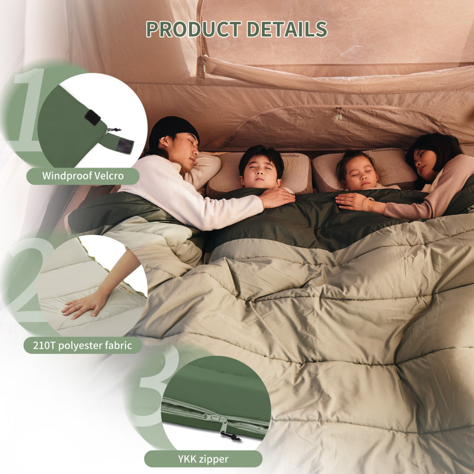 NATUREHIKE YC Extra wide – практичный и надёжный спальник для походов и кемпинга в межсезонье. Большой формат и прямоугольное исполнение дает дополнительную свободу движений и комфорт во время сна. Спальник выполнен из приятной на ощупь, вентилирующейся и быстросохнущей ткани, обеспечивающей максимальный комфорт. Его легко можно постирать в стиральной машине. Благодаря длинной надежной молнии спальный мешок можно полностью расстегнуть. Два мешка можно с помощью молнии соединить между собой, что удобно, к примеру, семье с двумя детьми. Спальный мешок компактно упаковывается в компрессионный мешок. Ткань: эпонж Подкладка: нейлон. Размеры, см: 200*115 Размер в упаковке, см: 40*26*26 Вес, кг: 2,4