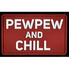 Нашивка, патч "Pew Pew and Chill" ПВХ тактическая с липучкой. Быстросъемная нашивка на липучке - велкро, для одежды, шапок, рюкзаков, сумок и тд. Размер: 50х80 мм