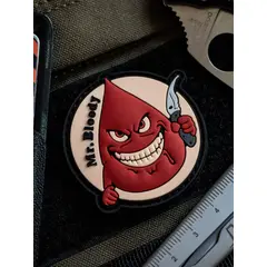 Зd ПВХ патч "Mr. Bloody" (Мистер Кровавый) Встречайте нового персонажа нашей безумной вселенной "Mr. Bloody" или Мистер Кровавый. Персонаж неспроста выполнен в виде капли крови, под ним Вы всегда можете расположить патч со своей группой крови, а этот весёлый, но опасный персонаж послужит ярким...