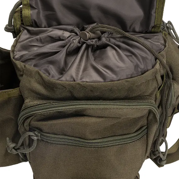 Изготовленный из плотного водонепроницаемого полиэстера, рюкзак защищает содержимое от влаги, грязи и повреждений. Продуманная конструкция сочетает вместительность и компактность — размеры 30×25 см позволяют удобно разместить всё необходимое: аксессуары для рыбалки, охотничье снаряжение или личные вещи.