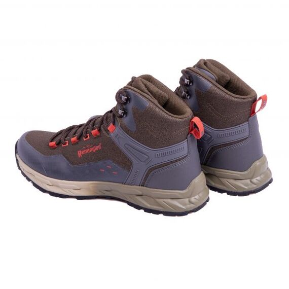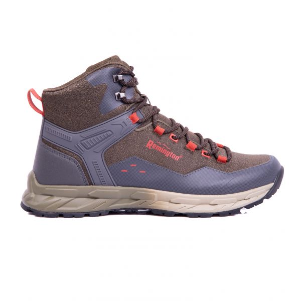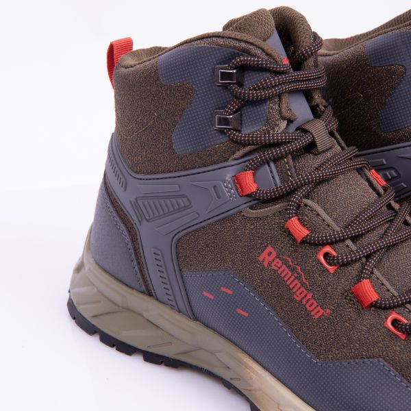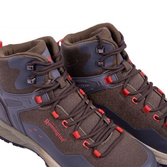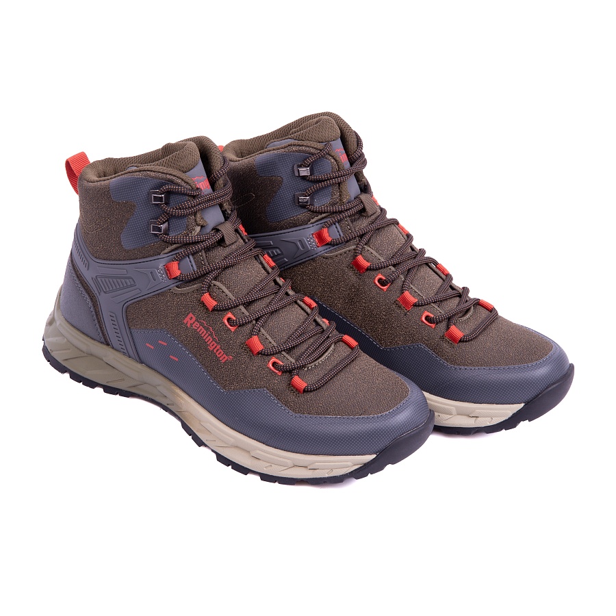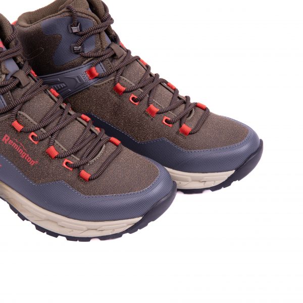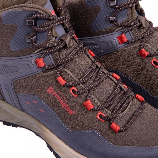 Ботинки Remington Ultra II Green подходят для туризма в условиях переменчивой погоды и высокой влажности. Верх изготовлен из полиэстера, который сочетает износостойкость, влагостойкость и способность поддерживать воздухообмен. Материал устойчив к ультрафиолетовому излучению и агрессивным химическим веществам. Вставки из TPU повышают прочность конструкции и защищают от механических повреждений. Подошва объединяет два материала: амортизирующий EVA снижает ударную нагрузку на стопу, а резиновая накладка с разнонаправленным протектором увеличивает сцепление с различными типами грунта.