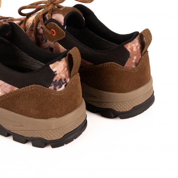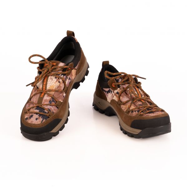 Комбинированные материалы обеспечивают хороший воздухообмен, поддерживая комфортный микроклимат внутри обуви. Промежуточная подошва из EVA эффективно смягчает удары, снижая нагрузку на стопу, а внешняя резиновая подметка с глубоким протектором гарантирует уверенное сцепление даже на мокрых и рыхлых участках. Усиленный мысок защищает пальцы от случайных ударов о коряги и камни, повышая безопасность при передвижении по пересечённой местности.