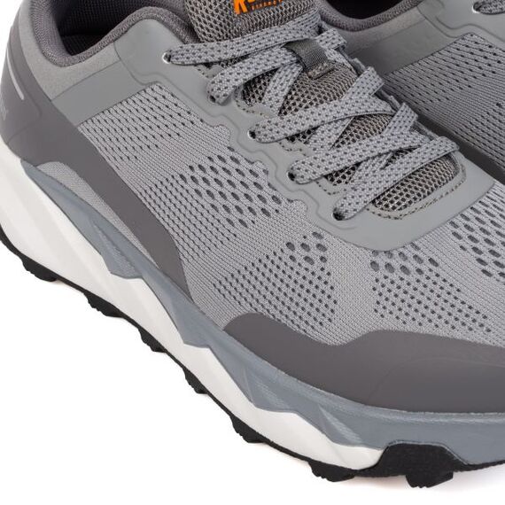 Верх выполнен из дышащего полиэстера и усилен вставками из TPU, что обеспечивает вентиляцию и устойчивость к износу. Амортизирующая подошва из EVA снижает нагрузку на суставы при ходьбе и тренировках, а резиновая накладка с разнонаправленным протектором отвечает за устойчивое сцепление с поверхностями. Удобная петля на пятке облегчает процесс надевания.