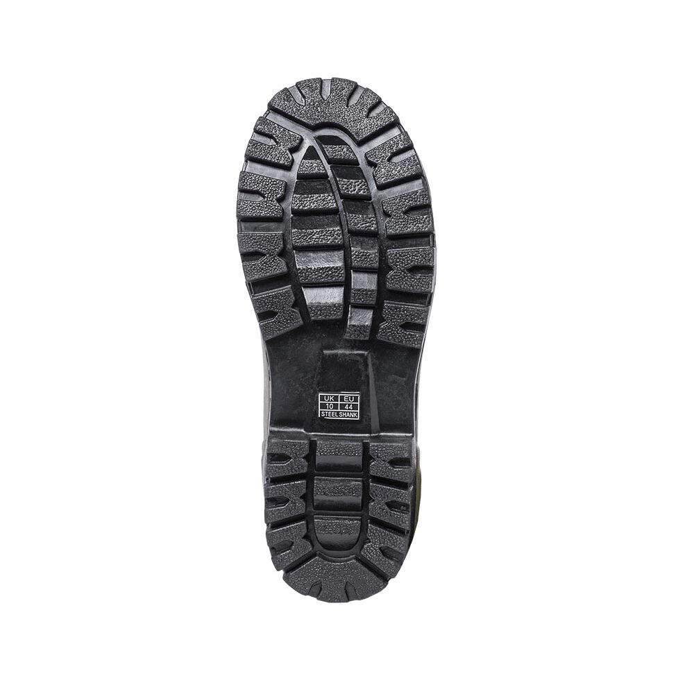 Подошва с выраженным протектором обеспечивает отличное сцепление с вязким и мокрым грунтом, а полностью герметичная конструкция исключает попадание влаги внутрь.