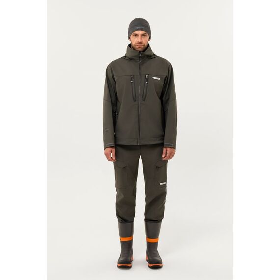 Костюм Remington Fish Place выполнен из прочного нейлона с внутренней стороны, дублированного флисом. Мембрана Climatic Pro с паропроницаемостью 8 000 г/м²/24 ч и водонепроницаемостью 5 000 мм защищает от ветра и осадков. Регулировки на кулису и велкро позволяют подогнать костюм под параметры любой фигуры и дополнительно защитить от непогоды.