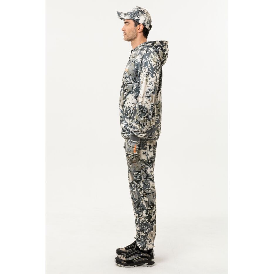 Костюм Remington Alabama Professional Apex изготовлен из обновленной, усиленной ткани с плотностью 320 г/м², что увеличивает износостойкость изделия. Ткань эластичная, не сковывает движения, что обеспечивает комфорт в процессе эксплуатации. Костюм можно использовать как самостоятельное изделие или в качестве утепляющего слоя. Манжеты на рукавах и резинка по низу брюк обеспечивают плотное прилегание и защиту от ветра. Втачной капюшон сохраняет тепло головы и служит дополнительным элементом маскировки.