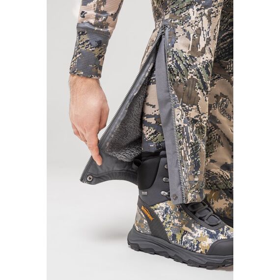 Костюм оснащен двумя глубокими карманами на молнии для удобного хранения личных вещей. Брюки имеют анатомический крой для комфорта при приседаниях и четыре кармана для размещения вещей. Внутренний утеплитель из искусственного меха и молния внизу брюк обеспечивают удобство при надевании или снятии обуви. Костюм может быть использован как самостоятельное изделие или как утепляющий слой.