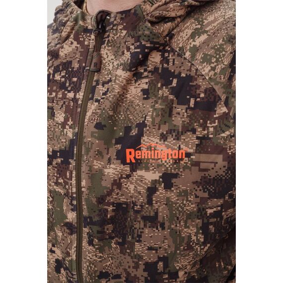 Костюм Remington Alabama Professional Green Forest изготовлен из обновленной, усиленной ткани с плотностью 320 г/м², что увеличивает износостойкость изделия. Ткань эластичная, не сковывает движения, что обеспечивает комфорт в процессе эксплуатации. Костюм можно использовать как самостоятельное изделие или в качестве утепляющего слоя. Манжеты на рукавах и резинка по низу брюк обеспечивают плотное прилегание и защиту от ветра. Втачной капюшон сохраняет тепло головы и служит дополнительным элементом маскировки.
