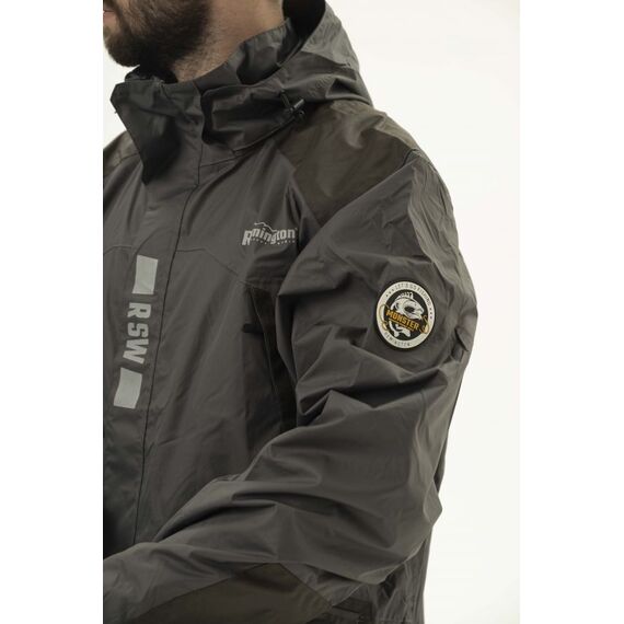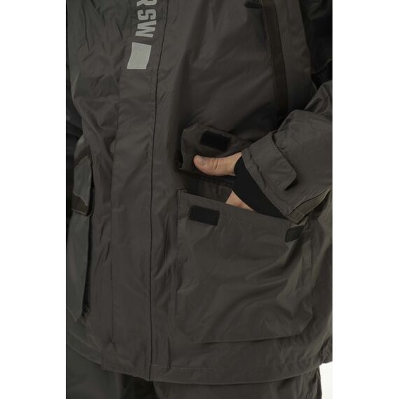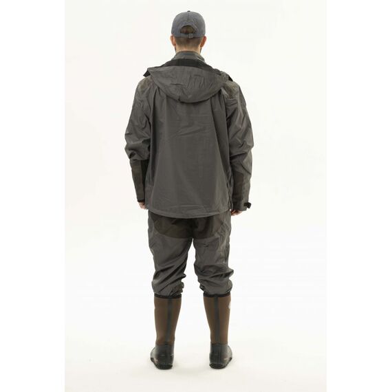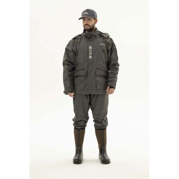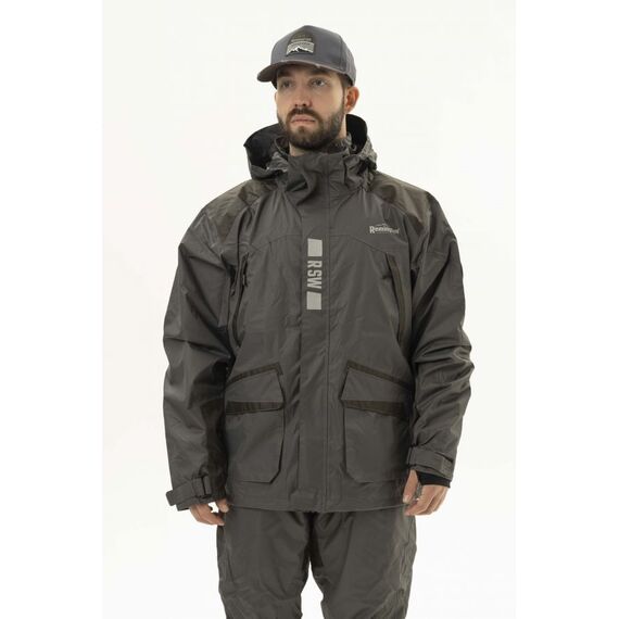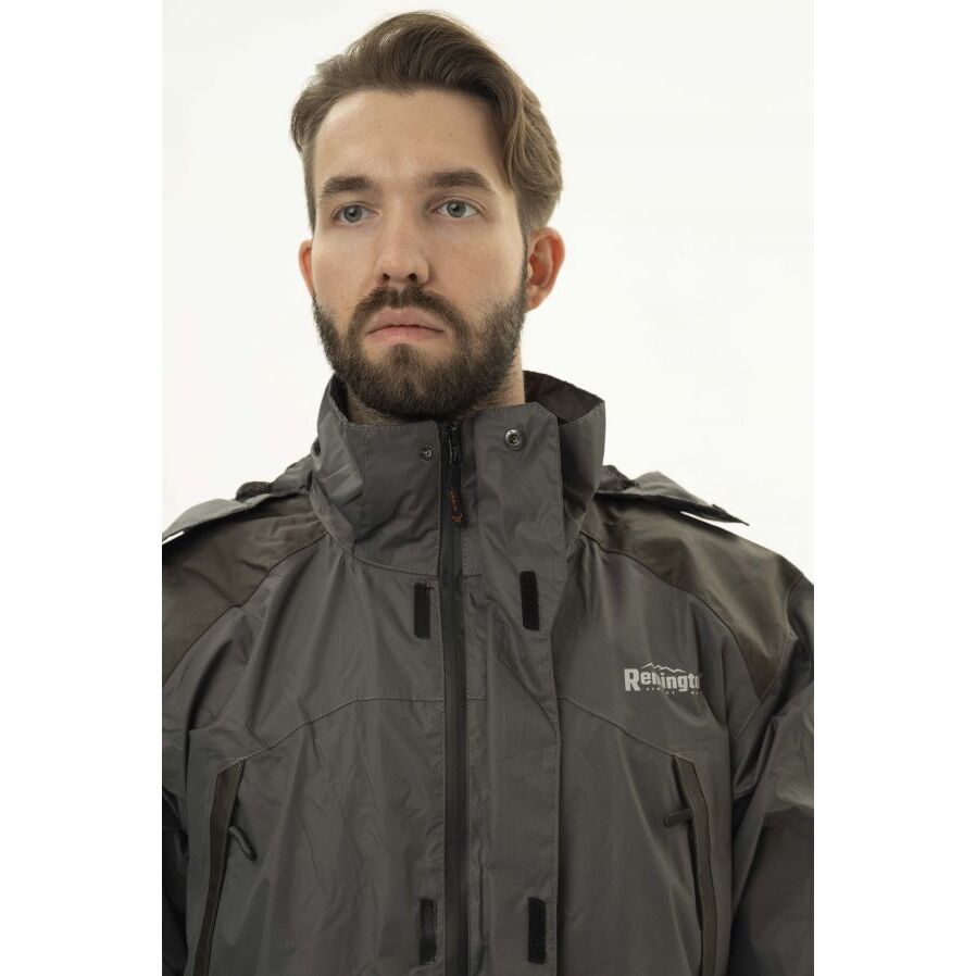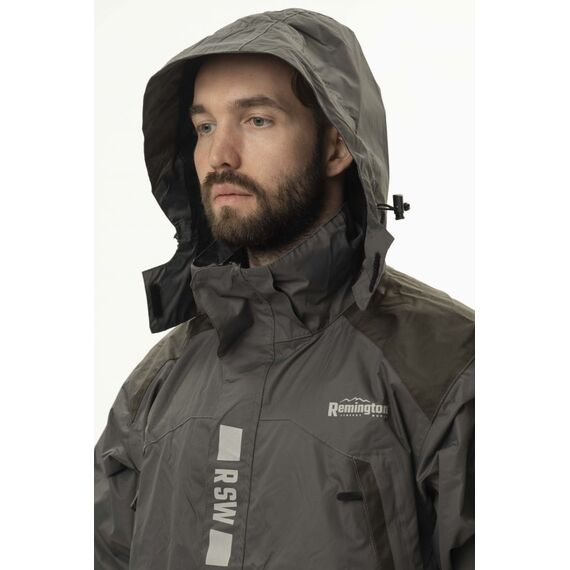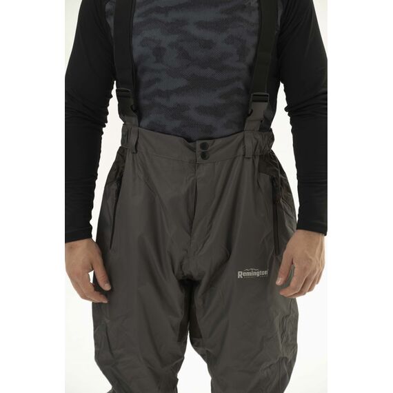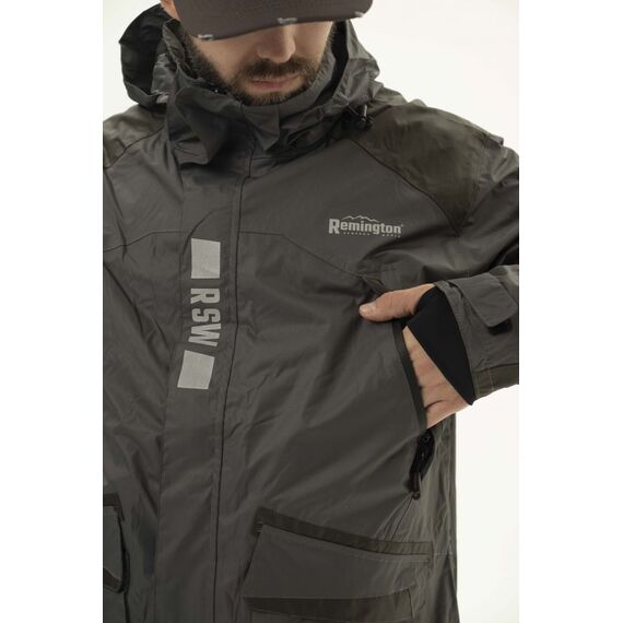 Костюм Remington Hay Wave Graphite предназначен для активного отдыха, рыбалки и охоты. Он выполнен из прочной и водоотталкивающей ткани, что обеспечивает защиту от дождя и ветра. В модели использована современная мембрана Climatic Pro с паропроницаемостью 3 000 г/м²/24 ч и водонепроницаемостью 3 000 мм, что позволяет поддерживать комфортные условия при любых погодных условиях. Костюм оснащен регулируемым капюшоном, манжетами и кулисами для дополнительной защиты. Брюки имеют съемные подтяжки, эластичный пояс и карманы на водозащитной молнии, что повышает удобство использования в различных условиях.