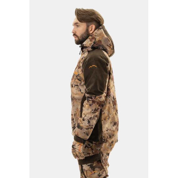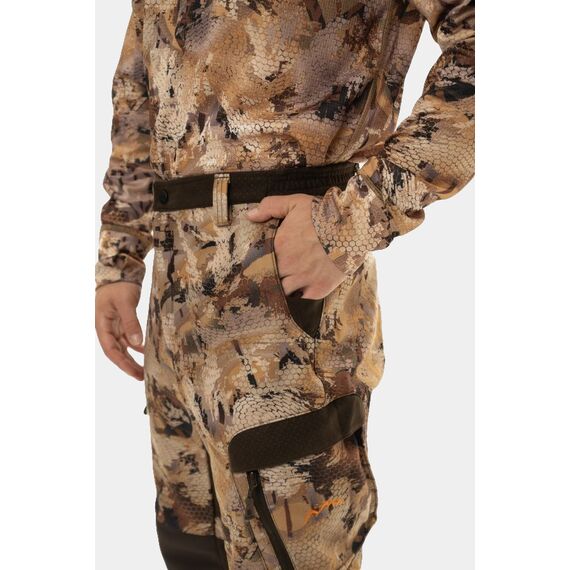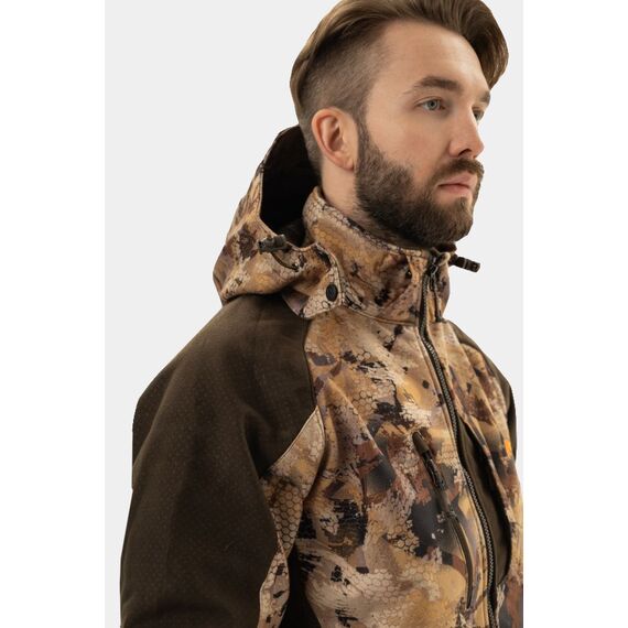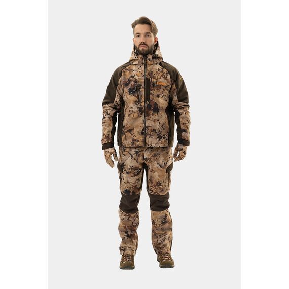 Демисезонный костюм Remington XM Elite Yellow Waterfowl выполнен из ткани с мембраной Climatic Pro, которая обеспечивает паропроницаемость 10 000 г/м²/24 ч и водонепроницаемость 10 000 мм. Для улучшения воздухопроницаемости в модели предусмотрены специальные вставки. Внутренний слой ткани с сотовой структурой улучшает теплоизоляцию. Кулисы на куртке, регулируемые манжеты и эластичный пояс на брюках позволяют подогнать костюм под фигуру и сохранить тепло. Капюшон с регулировками объема защищает от непогоды и не мешает обзору. Карманы обеспечивают удобное хранение необходимых вещей.
