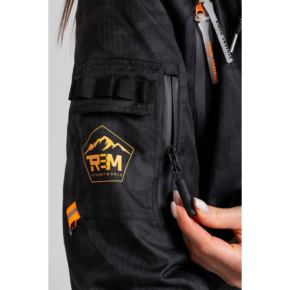 Манжеты с отверстием под большой палец фиксируют рукав на запястье, а объём регулируется с помощью велкро. Десять функциональных карманов позволяют удобно распределить личные вещи, а светоотражающие элементы повышают безопасность в условиях слабой освещённости. Укреплённая ткань на спинке продлевает срок службы изделия.