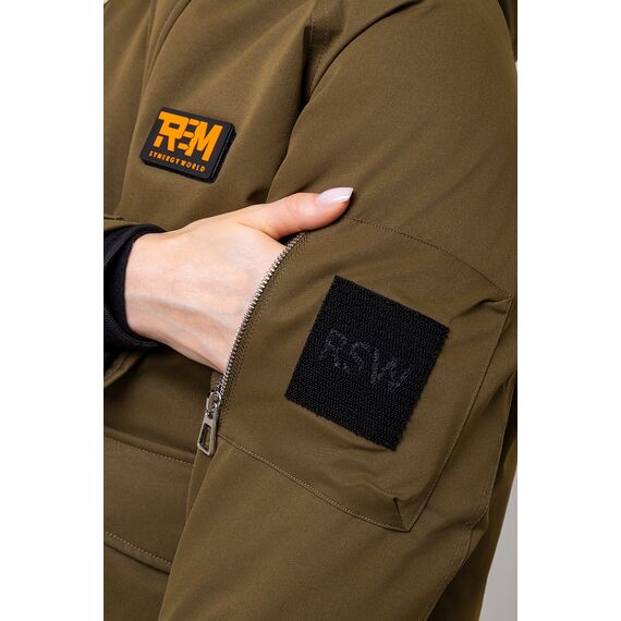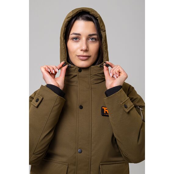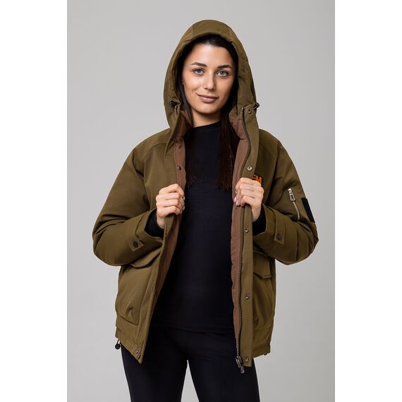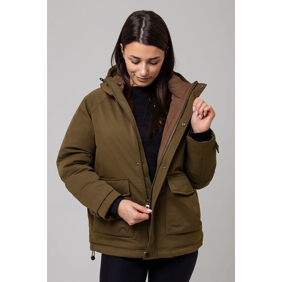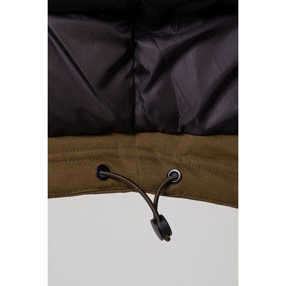 Капюшон с регулировкой по объему защищает от осадков и ветра. Куртка утеплена искусственным пухом плотностью 257.6 г, что сохраняет тепло при межсезонной погоде. Шесть карманов дают возможность удобно распределить личные вещи.