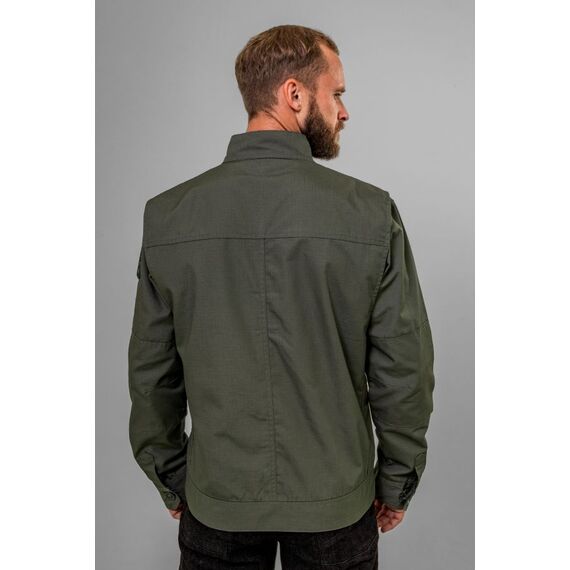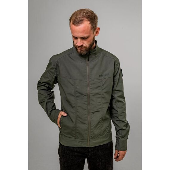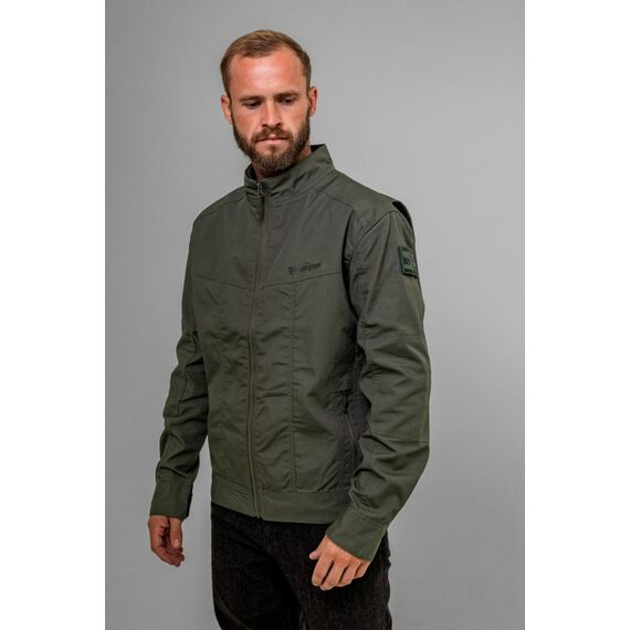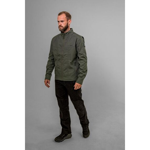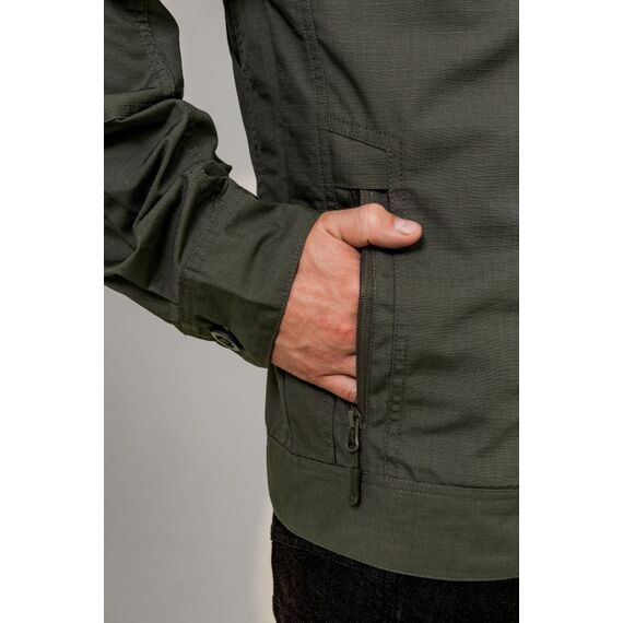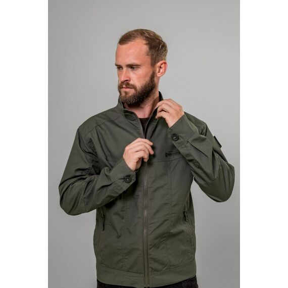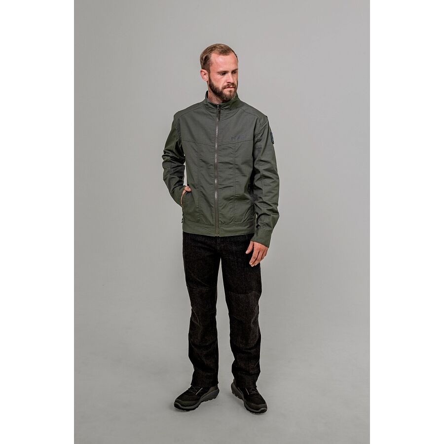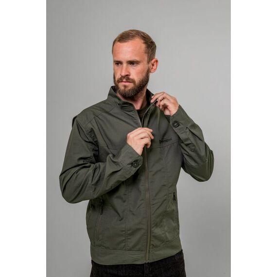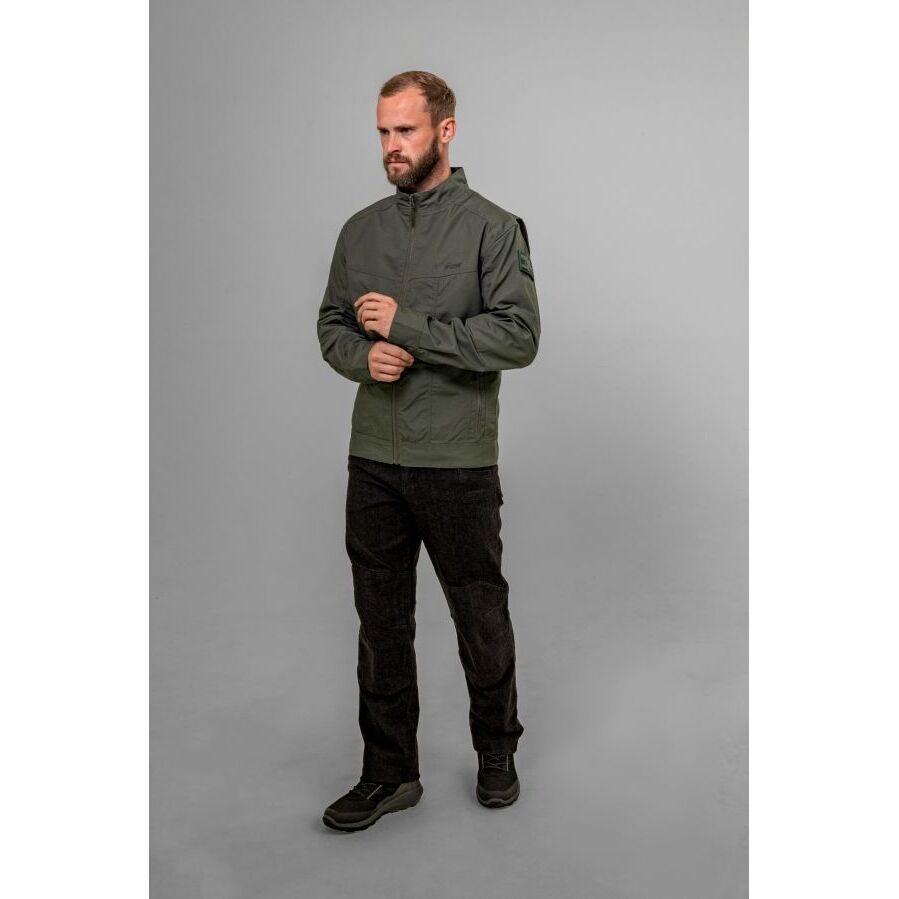 Смесовый состав ткани обеспечивает её хорошую воздухопроницаемость, а оливковый цвет подходит для охоты, рыбалки и активного времяпрепровождения на природе. Удобные регулировки позволяют подогнать куртку по индивидуальным параметрам.