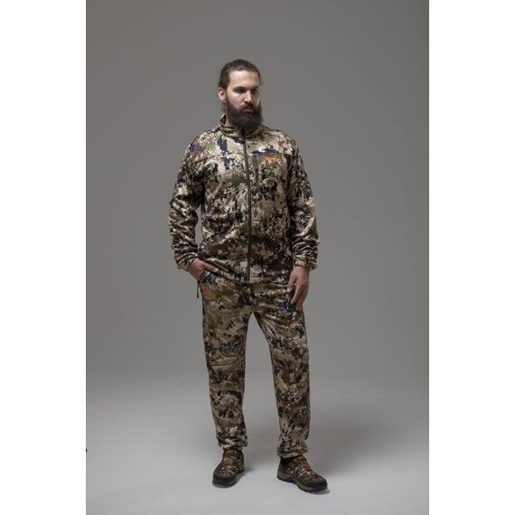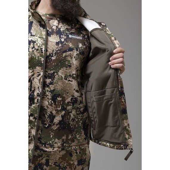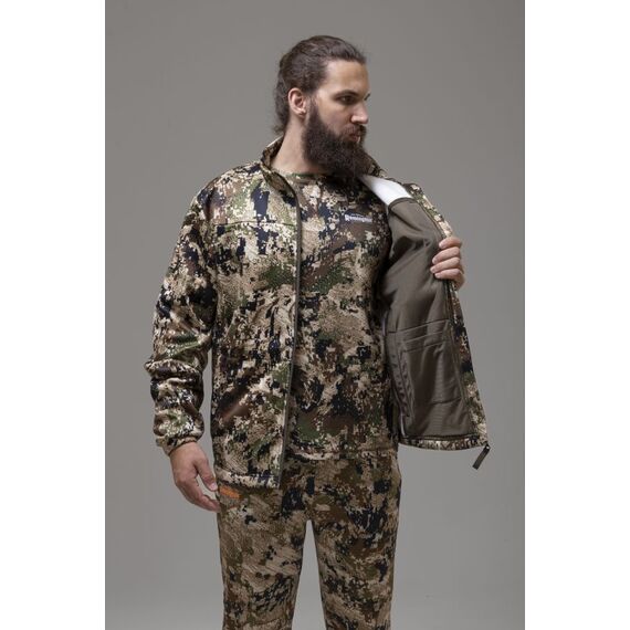 Внутренний слой из микрофлиса помогает сохранять тепло, а манжеты и воротник-стойка защищают от продувания. Кулиса по нижнему краю позволяет отрегулировать посадку, а карманы на молнии обеспечивают удобство хранения. Подходит для активного отдыха, охоты и рыбалки, а также для повседневной носки в межсезонье.